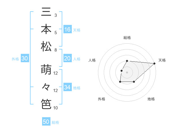 三本松 萌々笆さんを姓名の画数から五運を鑑定