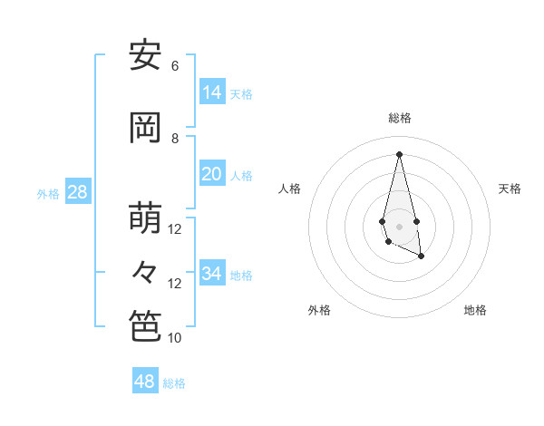 安岡 萌々笆さんを姓名の画数から五運を鑑定