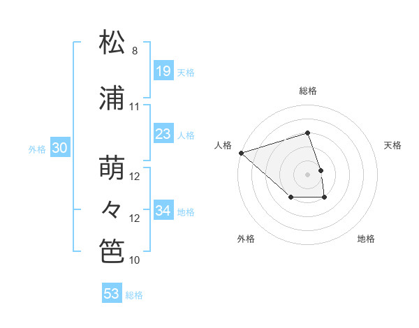 松浦 萌々笆さんを姓名の画数から五運を鑑定