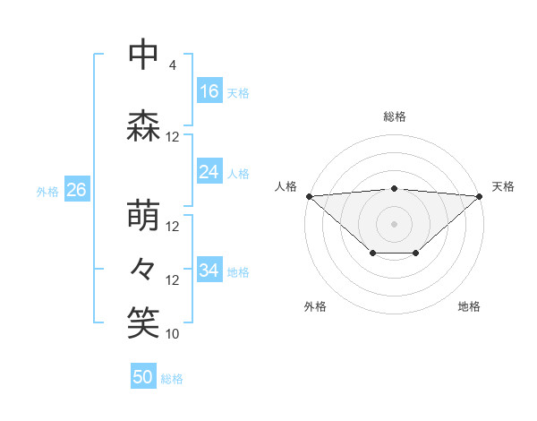 中森 萌々笑さんを姓名の画数から五運を鑑定