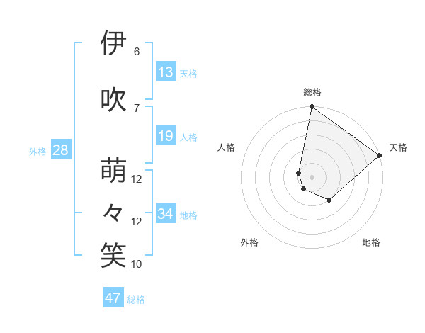 伊吹 萌々笑さんを姓名の画数から五運を鑑定