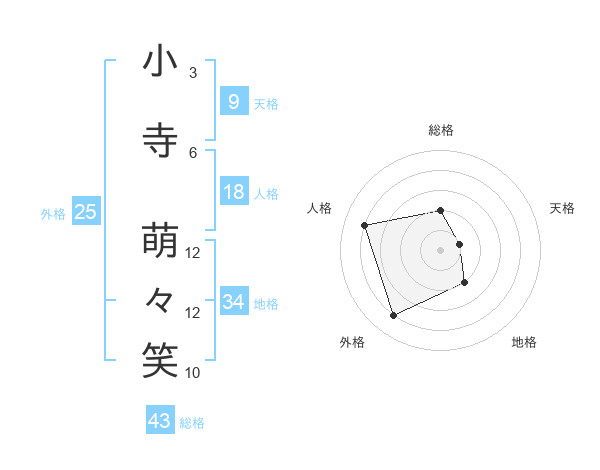 小寺 萌々笑さんを姓名の画数から五運を鑑定