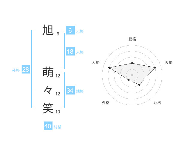 旭 萌々笑さんの総格は40画の2点!
