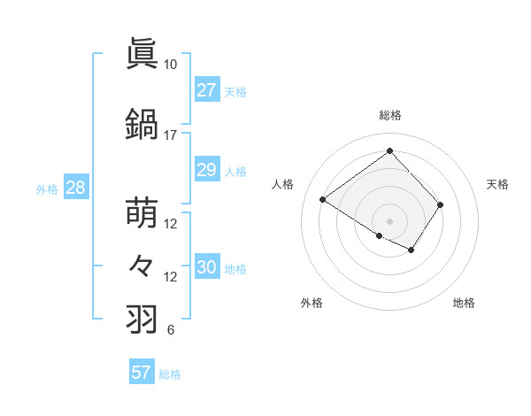 眞鍋 萌々羽さんを姓名の画数から五運を鑑定