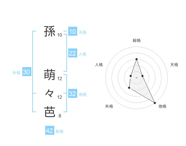 孫 萌々芭さんを姓名の画数から五運を鑑定