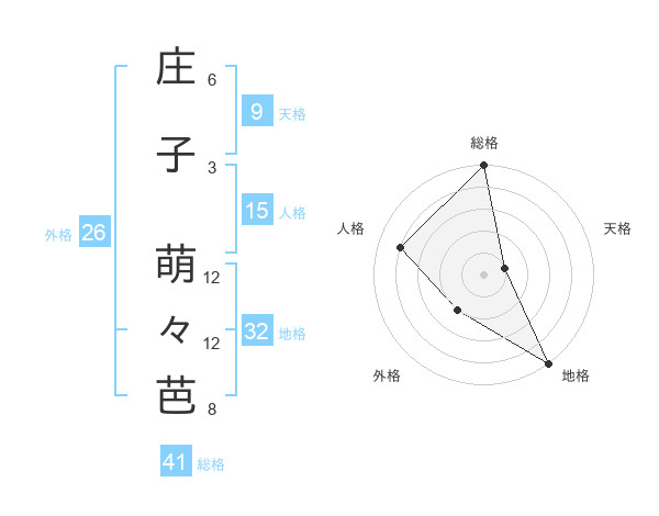 庄子 萌々芭さんの外格は26画の2点!