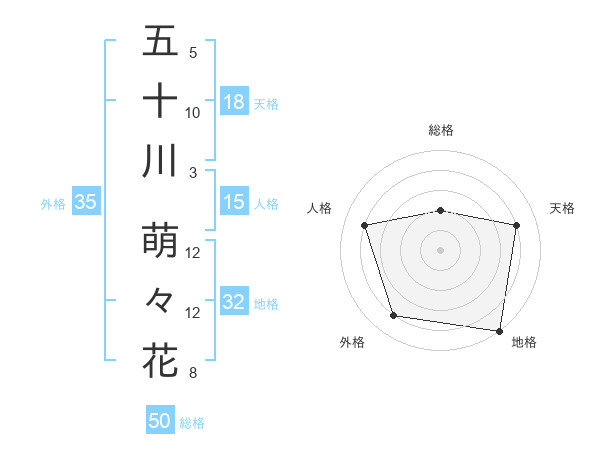 五十川 萌々花さんを姓名の画数から五運を鑑定
