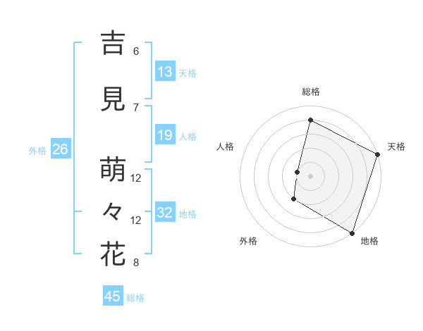 吉見 萌々花さんを姓名の画数から五運を鑑定