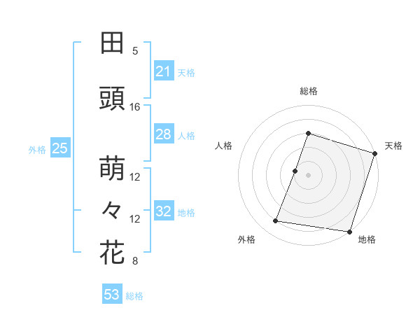 田頭 萌々花さんの天格は21画の5点!