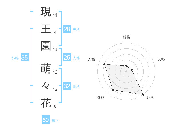 現王園 萌々花さんを姓名の画数から五運を鑑定