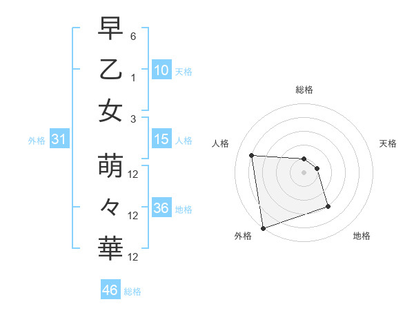早乙女 萌々華さんの総格は46画の1点!