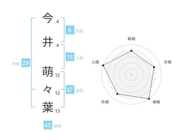 今井 萌々葉さんを姓名の画数から五運を鑑定