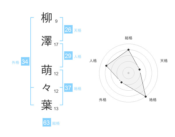 柳澤 萌々葉さんを姓名の画数から五運を鑑定