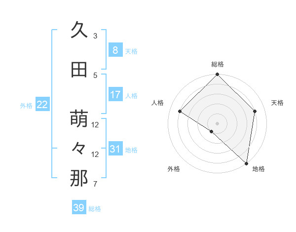 久田 萌々那さんを姓名の画数から五運を鑑定