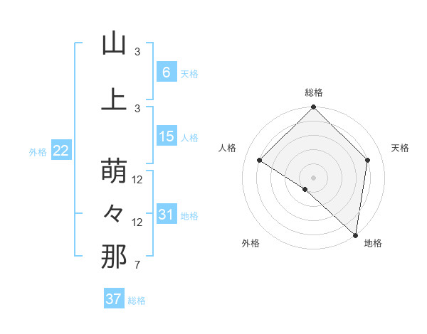 山上 萌々那さんを姓名の画数から五運を鑑定