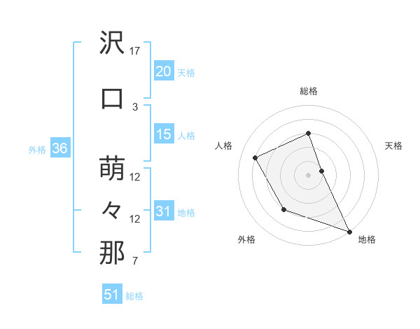沢口 萌々那さんを姓名の画数から五運を鑑定