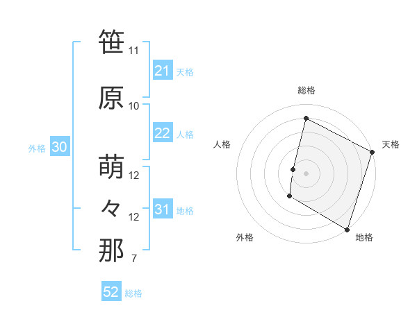 笹原 萌々那さんの天格は21画の5点
