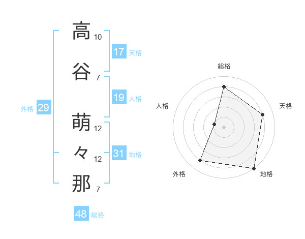 高谷 萌々那さんの総格は48画の4点!