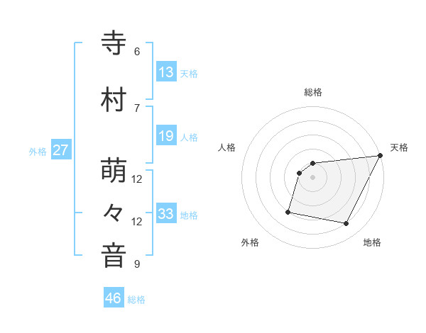 寺村 萌々音さんの総格は46画の1点!