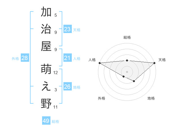 加治屋 萌え野さんを姓名の画数から五運を鑑定
