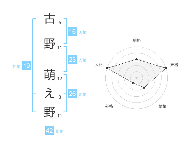 古野 萌え野さんを姓名の画数から五運を鑑定