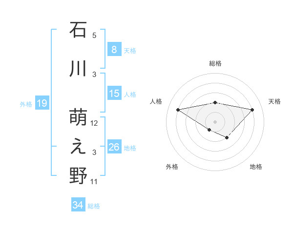 石川 萌え野さんを姓名の画数から五運を鑑定
