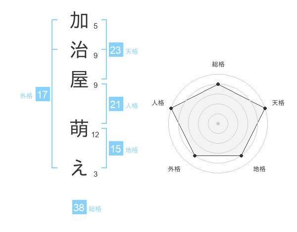 加治屋 萌えさんの天格は23画の5点!