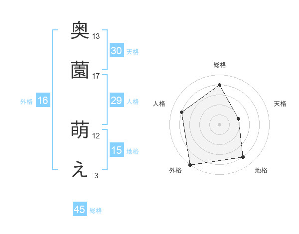 奥薗 萌えさんを姓名の画数から五運を鑑定