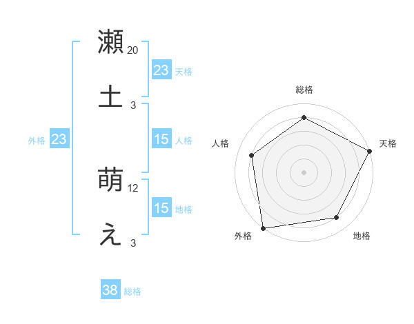 瀬土 萌えさんを姓名の画数から五運を鑑定