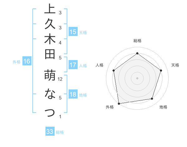 上久木田 萌なつさんを姓名の画数から五運を鑑定