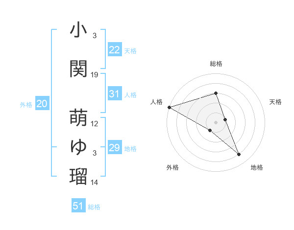 小関 萌ゆ瑠さんの総格は51画の3点!