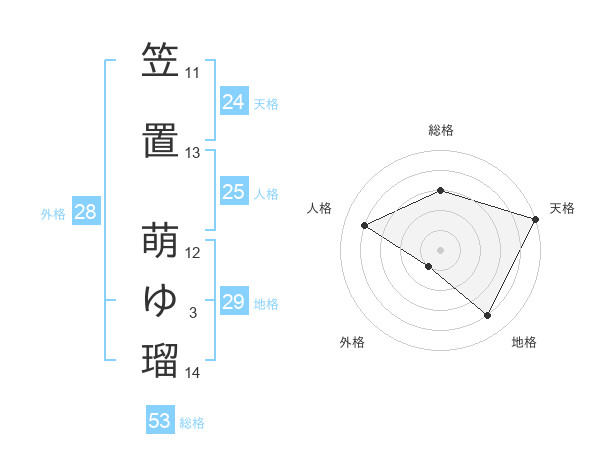 笠置 萌ゆ瑠さんの総格は53画の3点!