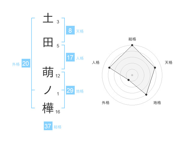 土田 萌ノ樺さんを姓名の画数から五運を鑑定