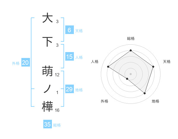 大下 萌ノ樺さんを姓名の画数から五運を鑑定