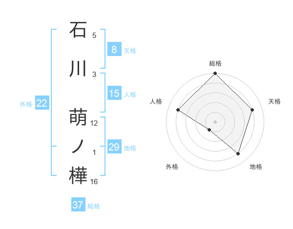 石川 萌ノ樺さんを姓名の画数から五運を鑑定