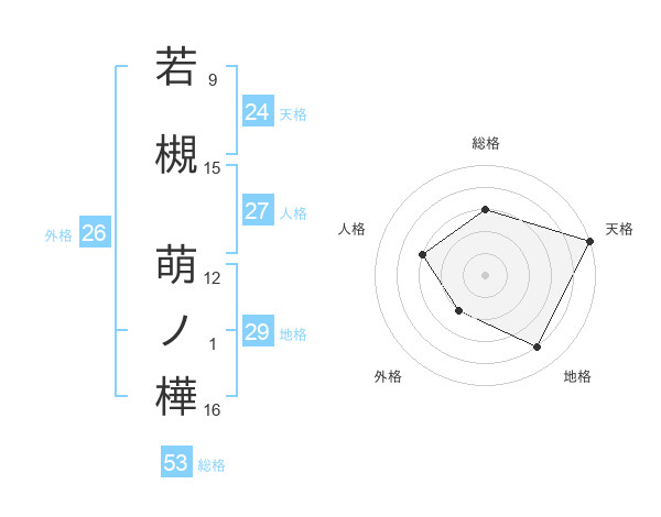 若槻 萌ノ樺さんの天格は24画の5点!