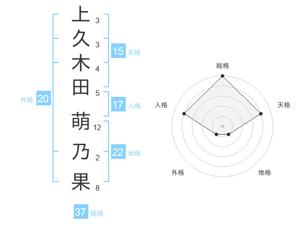 上久木田 萌乃果さんの総格は37画の5点!