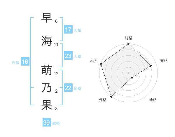 早海 萌乃果さんの天格は17画の4点!