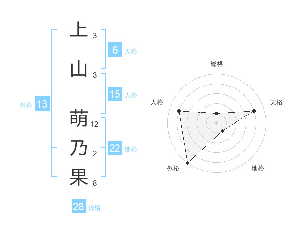 上山 萌乃果さんを姓名の画数から五運を鑑定