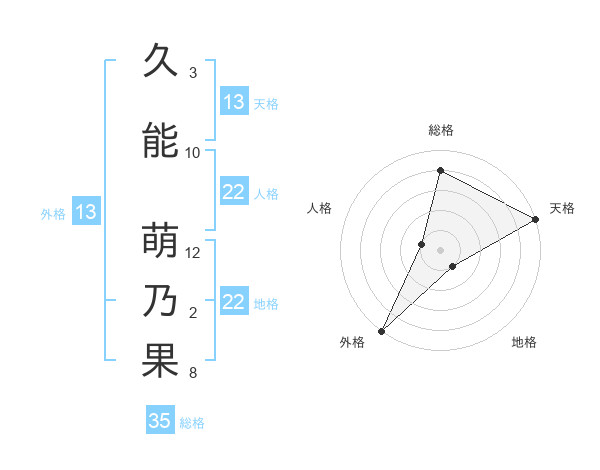 久能 萌乃果さんの外格は13画の5点!