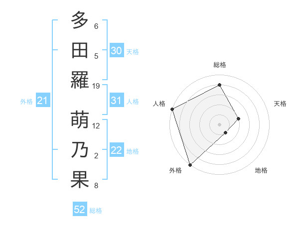 多田羅 萌乃果さんを姓名の画数から五運を鑑定