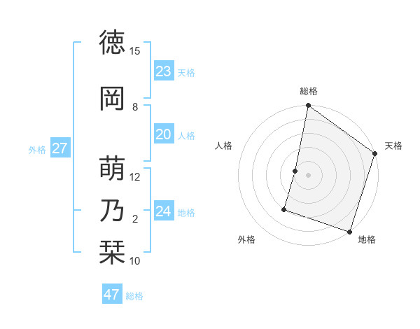 徳岡 萌乃栞さんを姓名の画数から五運を鑑定