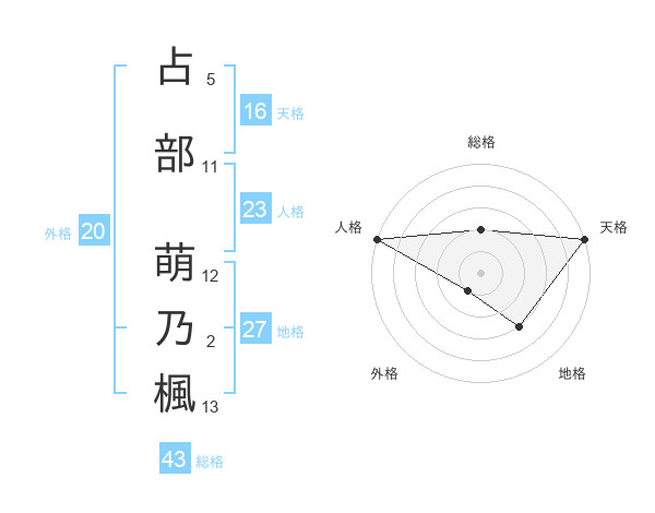 占部 萌乃楓さんを姓名の画数から五運を鑑定