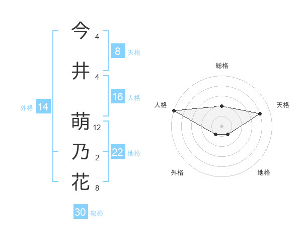 今井 萌乃花さんの天格は8画の4点!