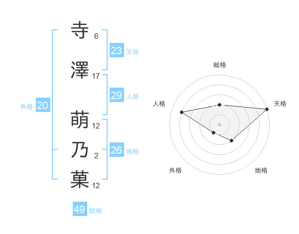 寺澤 萌乃菓さんを姓名の画数から五運を鑑定