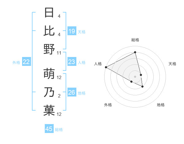 日比野 萌乃菓さんの総格は45画の4点!