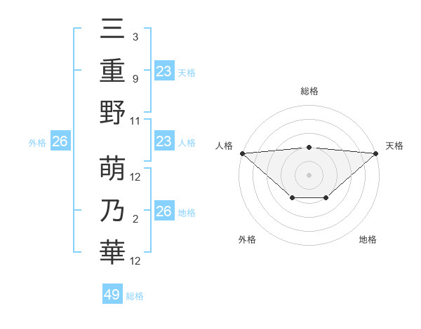 三重野 萌乃華さんを姓名の画数から五運を鑑定