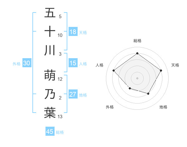 五十川 萌乃葉さんを姓名の画数から五運を鑑定
