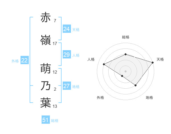 赤嶺 萌乃葉さんの天格は24画の5点!
