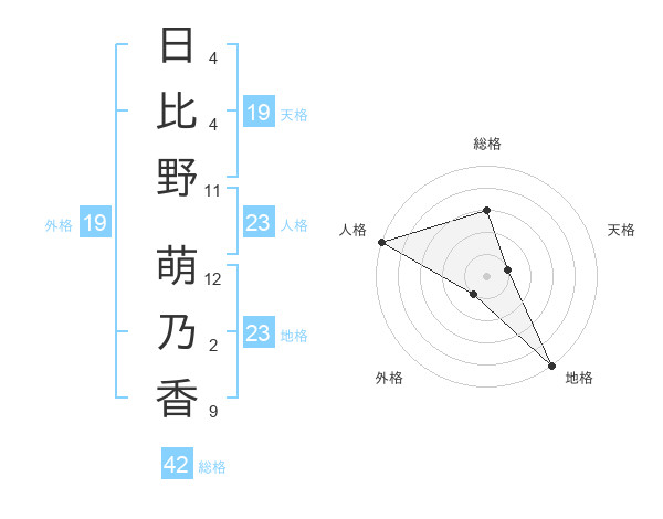 日比野 萌乃香さんの地格は23画の5点!